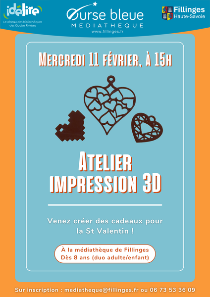 11/02Initiation / découverte dans le cadre d'un événementAtelier impression 3D : Spécial Saint Valentin !