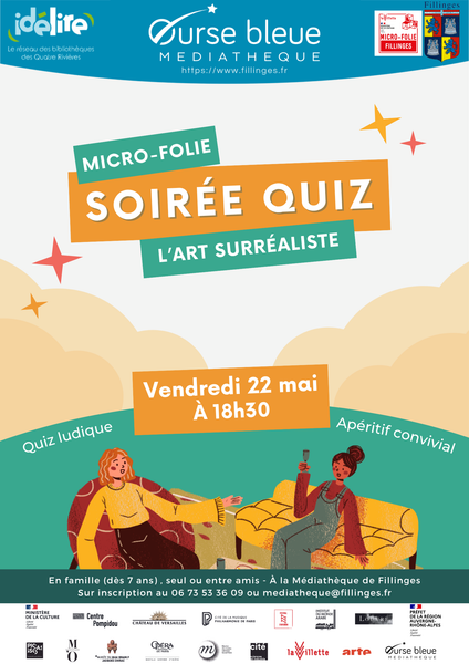 22/05Conférence / Débat / RencontreMicro-Folie : Soirée Quiz à la Médiathèque de Fillinges sur l'art surréaliste !