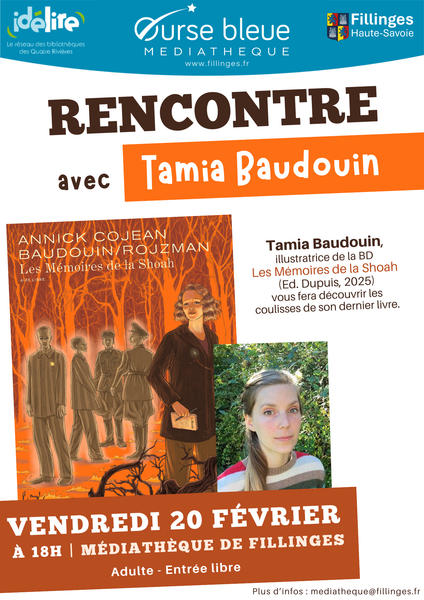 20/02Conférence / Débat / RencontreRencontre avec Tamia Baudouin, l’illustratrice de la BD « Le Mémoires de la Shoah »